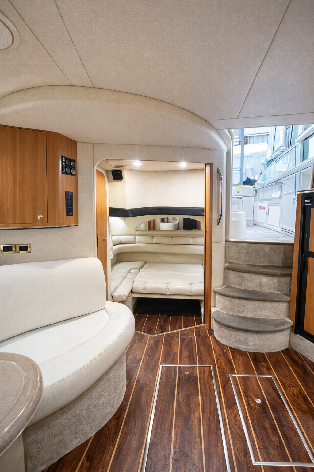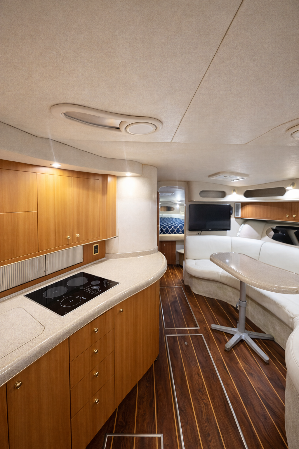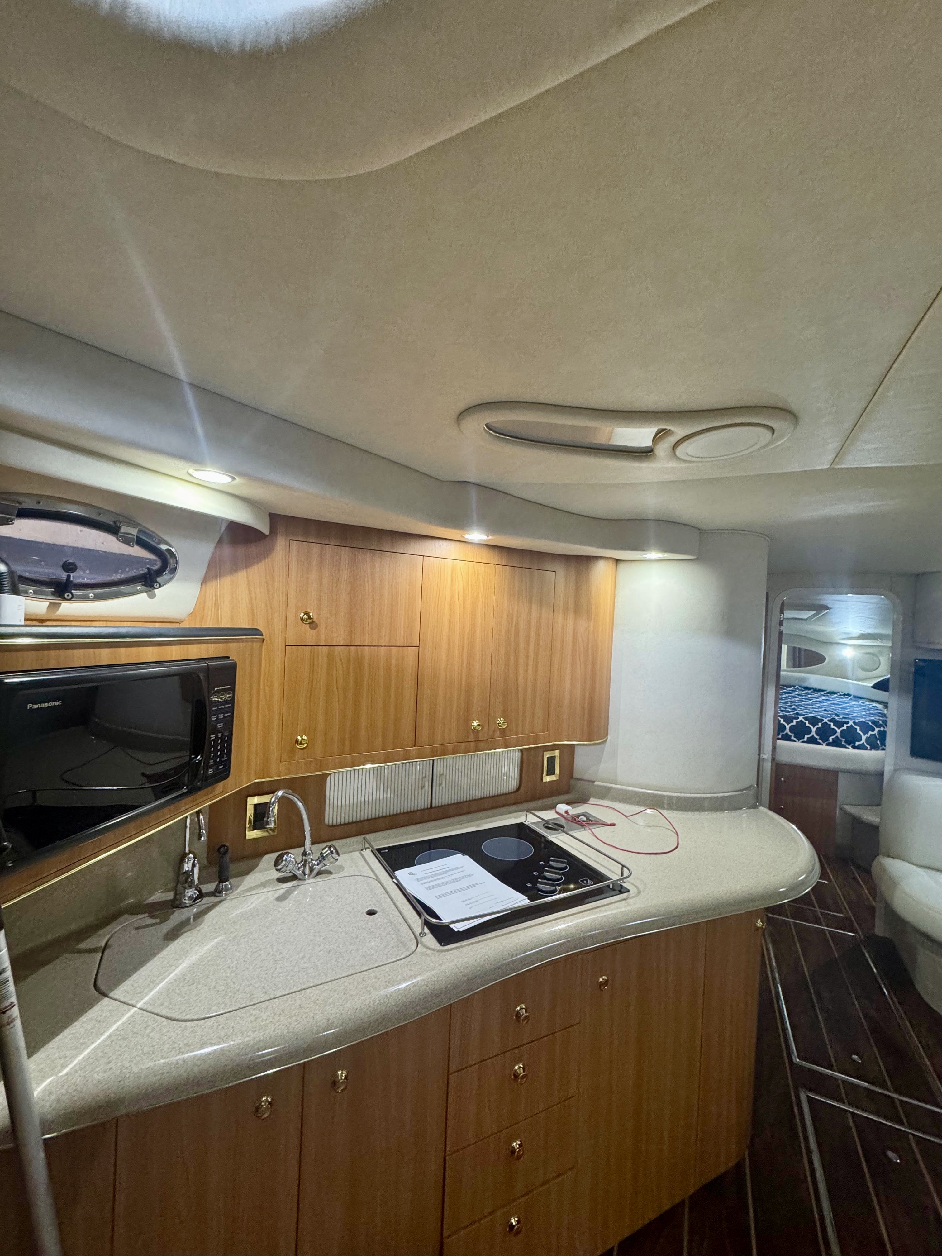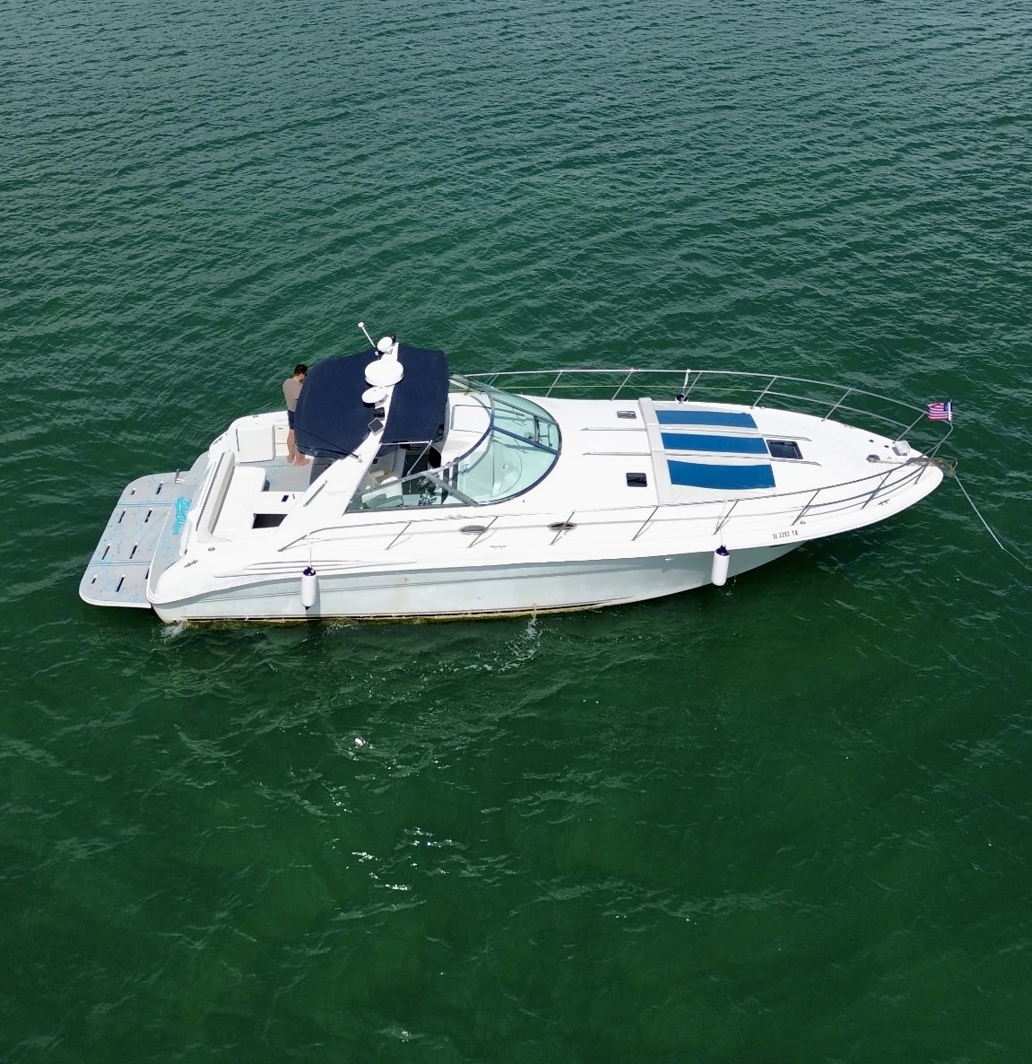 Our Sea Ray 45′ combines the open-air social feel of a bowrider with the protected accommodations of an express cruiser.