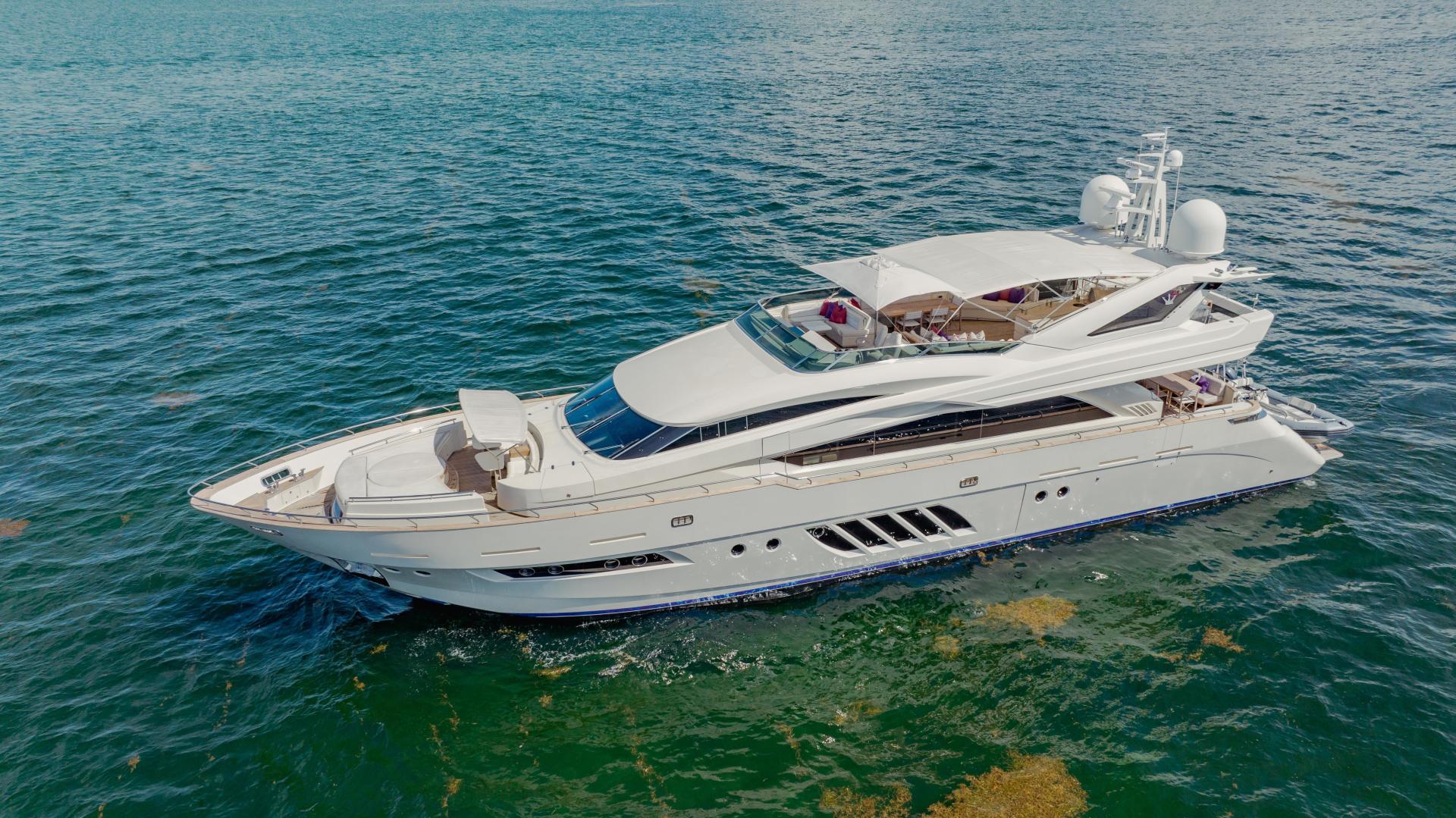 The Dominator 105′ is a high-end Italian luxury motor yacht offering a sleek, modern profile, bold panoramic glazing and generous guest amenities—designed to deliver performance and upscale comfort on the water.