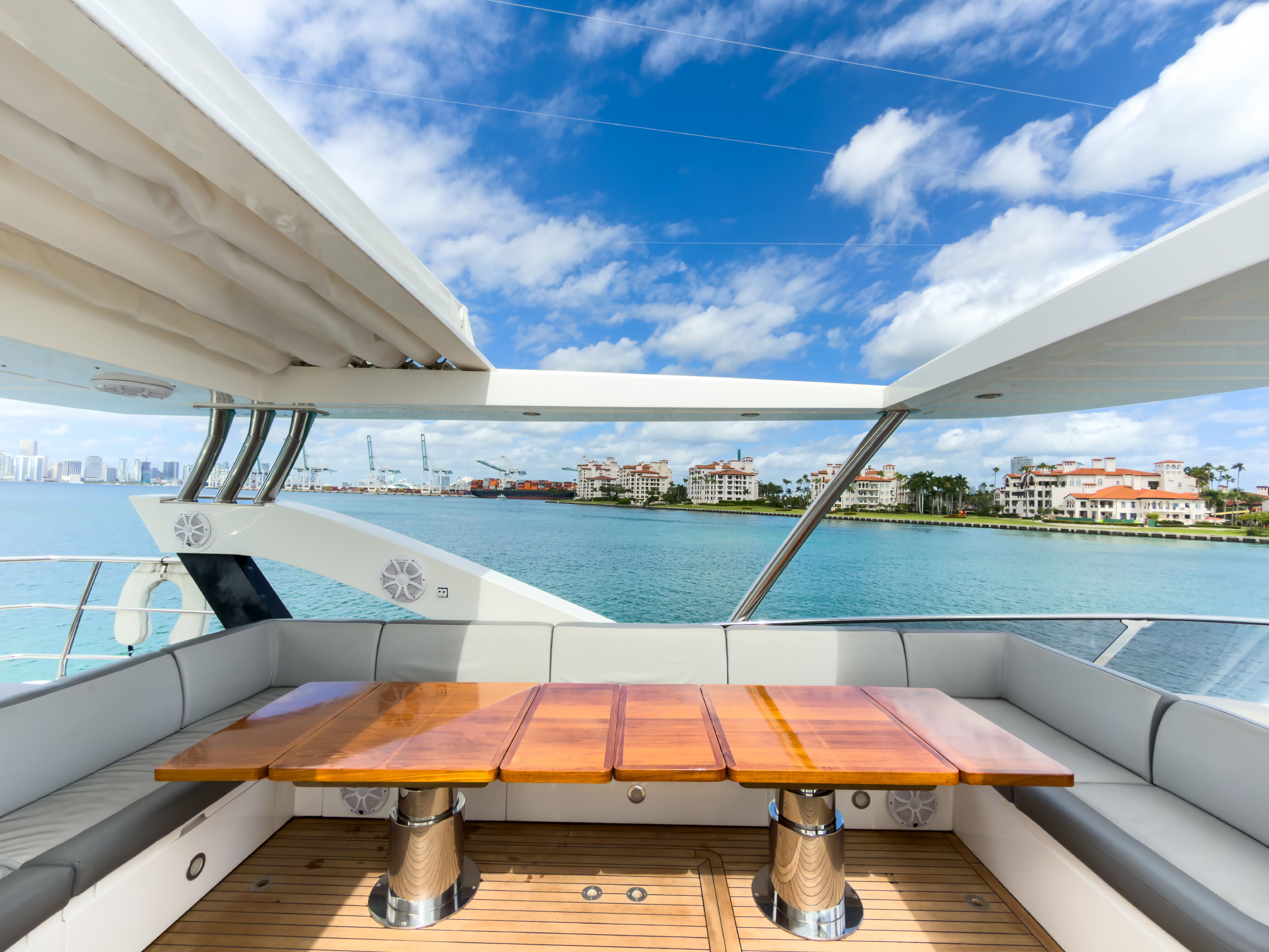 - 🛋️ Multiple lounge zones including shaded upper deck and panoramic salon